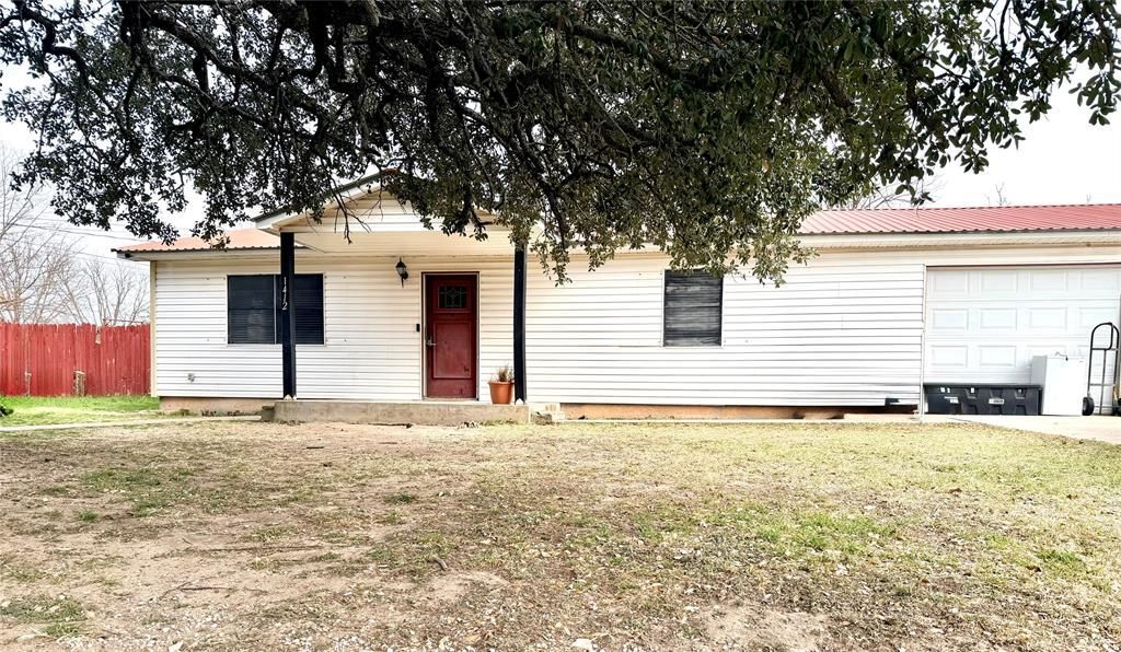 Welcome home to this well maintained 2 bedroom 1 bath property located on a corner lot in Goldthwaite Texas. A gorgeous oversized live oak tree provides excellent shade and strong curb appeal, creating a welcoming first impression. Inside, the home offers spacious rooms and central heat and air for year round comfort. The bathroom is thoughtfully designed with both a separate soaking tub and walk in shower, a feature not often found at this price point.Additional highlights include a durable metal roof and a very large attached two car garage with ample space for parking, storage, or a workshop. The fenced backyard includes a small storage building, ideal for tools or lawn equipment. Whether you are a first time homebuyer, looking to downsize, or searching for a solid investment property, this home offers comfort, functionality, and classic small town charm.