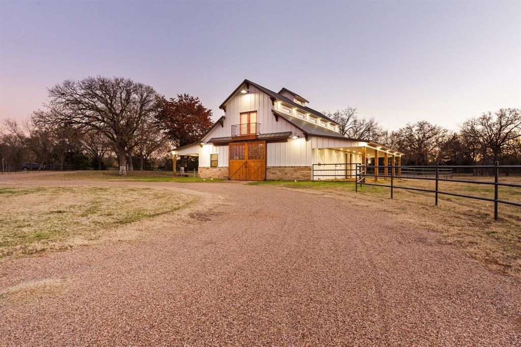 Welcome to your dream retreat just outside of DFW, only 35 minutes from Fort Worth and 55 minutes from Dallas. This expansive 52-ac property seamlessly blends nature with modern living, offering privacy, tranquility, and accessibility. Upon entering, you will cross Lockett Creek and, passing by a large fishing pond, you’re greeted by majestic 300-year-old oak trees that frame the landscape. The charming 2,376 sqft farmhouse features 4 bedrooms and 3.5 baths, designed in a style that makes it a cozy sanctuary. With an additional 4,000 sqft of outdoor decking and porches, this home is perfect for relaxation and entertaining. Enjoy evenings by the grand outdoor stone fireplace, complete with a TV entertainment center. The expansive patio, nestled among the oak trees, is ideal for gatherings. A spacious 4-car cedar carport ensures your vehicles are well protected. This property is a haven for outdoor enthusiasts. You will find an escape right out your back door; fish in the pond, stroll the scenic trails for hiking and horseback riding, and wildlife watching. A rustic 2-bed cabin with a loft and 2 full baths, featuring wraparound porches, offers a cozy retreat away from the main residence. This is a wonderful guest, in-law home, or even a rental opportunity. The property also includes a well-appointed 6-stall barn with an upstairs entertaining space that can double as a sleeping area, along with 2 full RV hookups for your convenience. 15 plus acres of pipe-fenced and cross-fenced pasture will become a haven for your four-legged friends. The large wooded portion of the property is chock full of wildlife of all species. An additional metal barn with concrete floors and roll-up doors is perfect for storing equipment, hay, or outdoor toys. Escape the hustle of city life and embrace the beauty and adventure this ranch has to offer. Don’t miss this unique opportunity to own a piece of Texas paradise!