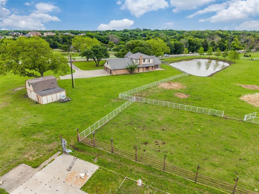 Enjoy a relaxed country lifestyle just 15 minutes from Dallas. This private 10.5-acre retreat offers tranquil views, expansive outdoor entertaining areas, and endless potential.Ideal for equestrian use or livestock, the property features 2 ponds, an 8-stall 50x100 horse barn with concrete floors, feed room, tack room, and clean room. The land is outlined with pipe and cable fencing and includes cross-fenced pasture areas with the potential for an agricultural exemption.Additional highlights include a guest house, mature oak trees, and abundant producing fig, peach, and pear trees. Conveniently located just minutes from Town Center Park, this property offers a rare combination of privacy, acreage, and accessibility.The main home requires significant renovation or may be a teardown. Property is being sold AS IS. All information, including but not limited to measurements, schools, and features, to be verified by buyer and buyer’s agent.