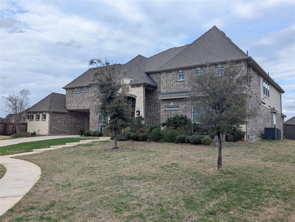 This stunning 6-bedroom, 4.5-bath home sits on a sprawling ¾-acre lot, complete with a backyard oasis featuring a luxurious pool and spa with a cascading waterfall and tanning shelf. As you pass through the porte-cochere, you’ll immediately notice the expansive parking area and the convenience of a split 3-car garage. The home’s curb appeal is undeniable, with elegant coach lights, a stone façade, and exquisite iron and glass front doors welcoming you inside. Step through the entryway into a bright, open floor plan, where an oversized dining room and durable wood-grained ceramic tile set the tone for modern elegance. The family room boasts a stunning floor-to-ceiling stone fireplace and offers gorgeous views of the expansive backyard and pool. A dream kitchen awaits any home chef, featuring a double oven, an upgraded 6-burner gas cooktop, and a California-style island topped with decorator granite. On the main floor, convenience is key with the primary suite, a guest bedroom, and a study all easily accessible without climbing stairs. Heading upstairs, you'll be captivated by the winding staircase adorned with intricate iron balusters and birdcage accents. The second floor offers an oversized game room—perfect for lounging or play—as well as a cozy media room ready for movie nights. Four additional bedrooms upstairs are thoughtfully arranged, complete with a mix of en-suite and Jack-and-Jill bathrooms for ultimate functionality. This home is located less than a mile from Lake Lewisville, offering plenty of opportunities for fishing, hiking, and outdoor activities. It truly offers the perfect blend of luxury, space, and thoughtful design, both inside and out.