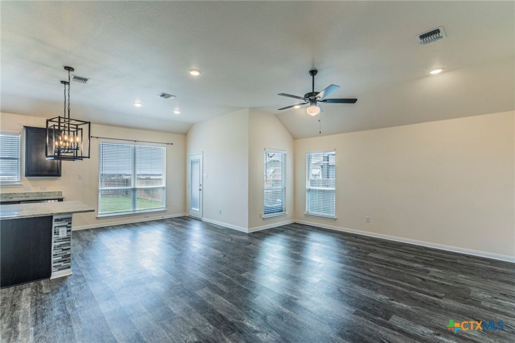 This beautifully well maintained 3 bedroom, 2 bathroom, Craftsman-style home was built by Stylecraft and offers 1,527 square feet located in the desirable North Gate Subdivision of Temple, located within the sought after Belton ISD. The home has inviting curb appeal, a rich alder-stained front door that creates a warm and elegant entry. Inside, vnyl plank flooring throughout the home, provides durability and a modern style. The open concept living area is perfect for entertaining or relaxing. The kitchen features sleek granite countertops, center island ideal for serving or casual dining, stainless steel appliances, refrigerator, range, dishwasher, disposal and microwave. The dining area opens seamlessly to the living and kitchen, enhancing the home's bright and airy feel. Designed with a split floor plan, the private primary suite offers a peaceful retreat, ceiling fan, garden tub, separate shower, granite countertops and an oversized walk in closet. The secondary bedrooms are spacious and includes walk-in closet. The laundry room is both functional and generous-sized, equipped with a full size washer and dryer, folding counter and hanging space. Outside there is a covered patio, a wood privacy fence and in-ground sprinkler system. This home is move in ready. Don't miss this lovely home.