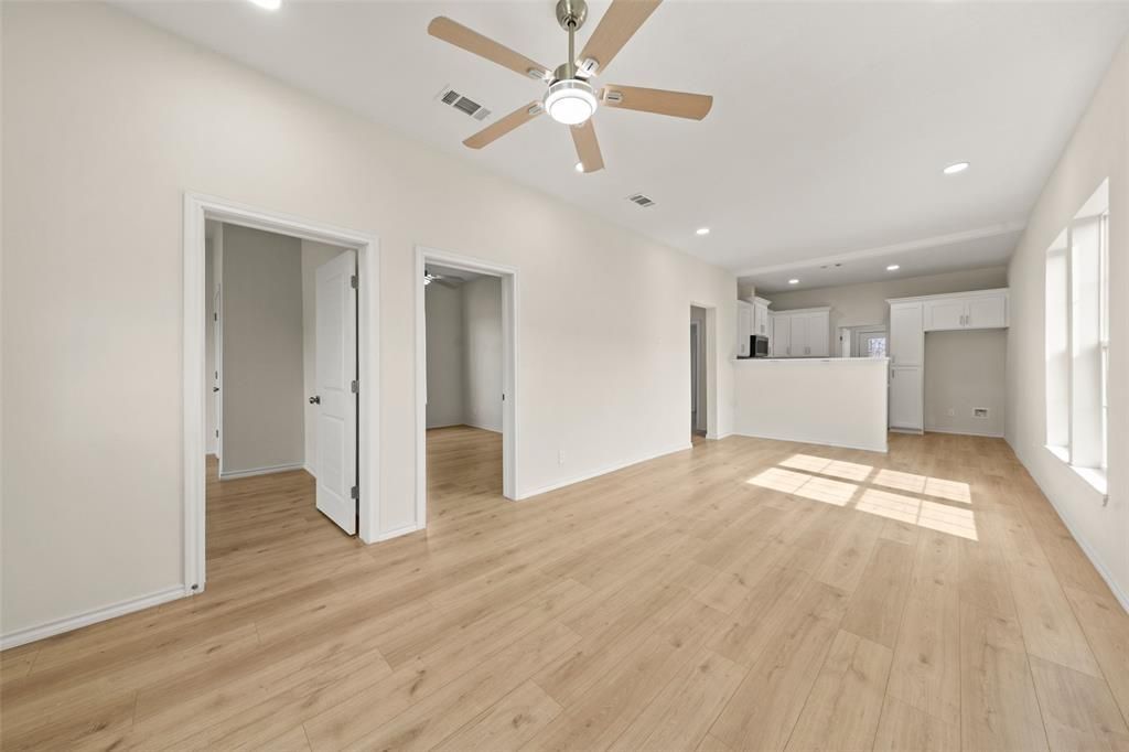 Welcome to this lovely, newly remodeled 3-bedroom, 2-bathroom home offering 1,197 square feet of thoughtfully updated living space. From the moment you arrive, you’ll appreciate the fully fenced front yard and inviting sidewalk that leads to a spacious covered front porch—complete with a ceiling fan, making it the perfect spot to relax and unwind.A paved driveway runs along the side of the home, providing convenient access to the backyard. This property has been beautifully upgraded with a new roof, new Hardie board siding, and foam insulation for added energy efficiency and peace of mind.Step inside to an open-concept floor plan featuring durable laminate flooring throughout and recessed lighting that brightens the main living areas. The kitchen is designed to impress, showcasing quartz countertops, a crisp white tile backsplash, ample cabinet space, and seating for high barstools—ideal for casual dining or entertaining guests.The primary suite offers a stylish retreat with quartz countertops, a walk-in marble shower with a built-in seating area, and a small window that fills the space with natural light. The guest bathroom also features quartz countertops, a tub shower combination, and generous cabinet storage.The laundry area is conveniently located toward the back of the home and includes additional cabinet space for storage and organization. Step outside through the back door to a generously sized yard, offering plenty of space for outdoor gatherings, gardening, or simply enjoying the open air.This move-in-ready home blends modern upgrades with everyday comfort—ready for you to move in and make it your own.